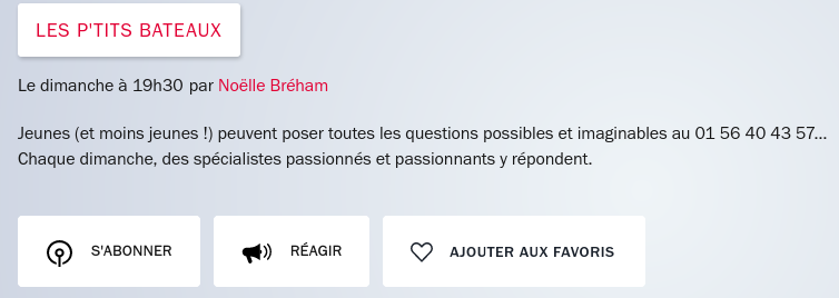 Il est également possible de profiter de la mise à disposition des émissions pour les écouter directement, sans les télécharger, sans s’abonner, comme lorsqu’on regarde une vidéo sur internet par exemple.