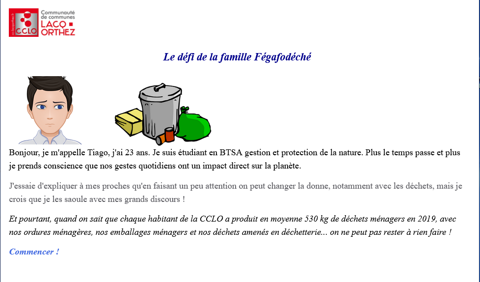 A l’occasion de la semaine de réduction des déchets, le Réseau Cyber-base et le service déchets de la Communauté de Communes de Lacq-Orthez ont créé un jeu en ligne vous permettant d’apprendre les bons gestes à réaliser au quotidien pour réduire vos déchets et l‘impact écologique de vos usages numériques.