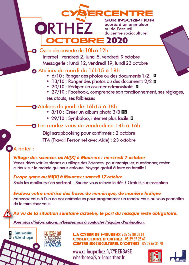 Les ateliers et animations du mois d’octobre 2020