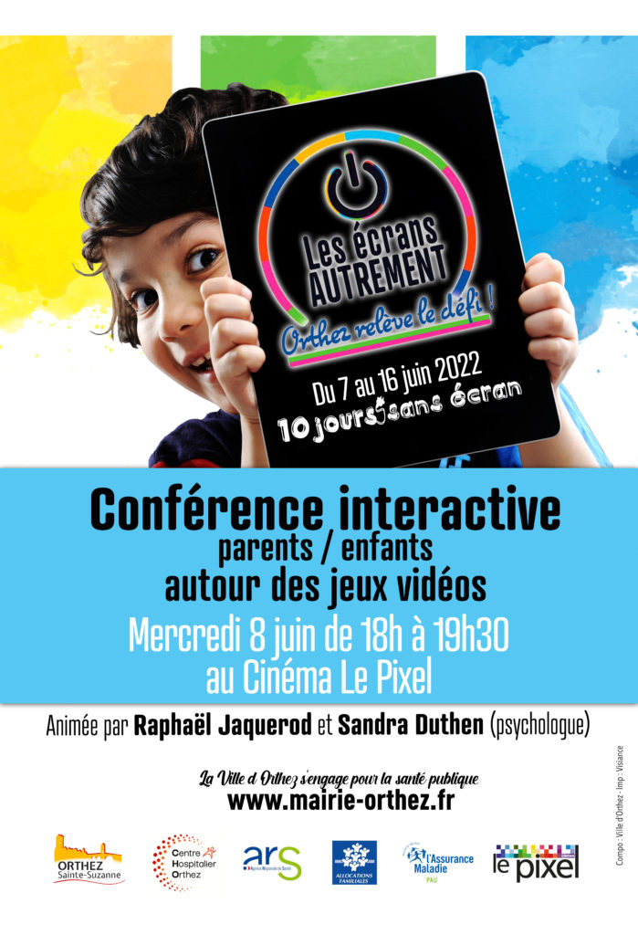 – mercredi 8 juinde 18h à 19h30 au cinéma Le Pixel : Conférence interactive parents / enfants autour des jeux vidéo, animée par Raphaël Jacquerod (Pixel) et Sandra Duthen (psychologue).