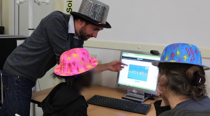 Lors de la Fête du Cybercentre d’Orthez, enfants et adultes ont joué ensemble à des jeux ludo-éducatifs, réalisé des cartes de vœux dansantes et joué au Labyrinthe Mystère 3D.